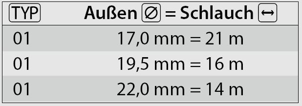 - Vooliku pikkus: kuni 21 m (sõltuvalt vooliku läbimõõdust)