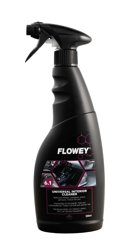 FLOWEY 6.1 UNIVERSAL INTERIOR CLEANER on mitmeotstarbeline salongipuhastusvahend kõigi auto sisepindade hoolduseks – plast, vinüül, tekstiil, vaibad ja värvitud pinnad. Tootel on neutraalne pH, mis teeb selle ohutuks ka õrnadele materjalidele. Eemaldab tõhusalt mustuse ja tugevamad plekid, taastades pindade puhta ja värske välimuse. Kergelt vahutav koostis sobib ideaalselt ka suruõhuga töötavatesse puhastuspüstolitesse. Jätab meeldiva roheline tee lõhna ning ei jäta triipe ega jääke.