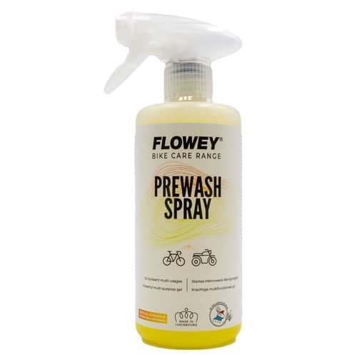 FLOWEY VM1 PREWASH SPRAY on geeljas eelpuhastusvahend, mis lahustab kiiresti mustuse, rasva ja teekile ning sobib kogu jalgratta või mootorratta puhastamiseks (välja arvatud pidurikettad). Toode kaitseb tundlikke materjale nagu karbon ja mattvärvid, on happest ja soodast vaba ning nakkuv geel ei jookse pindadelt maha. Pihusta, lase 5–8 minutit mõjuda ja loputa.