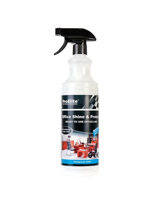 ProElite OFFICE SHINE & PROTECT on mitmeotstarbeline hooldus- ja viimistlusvahend, mõeldud puit-, laminaat- ja mööblipindadele. Toode annab pinnale sügava läike, rõhutab puidu või laminaadi värvi ning loob antistaatilise kaitsekihi, mis aitab vältida uue mustuse ja tolmu kogunemist. Lisaks annab meeldiva viimistluse ja värskendab objekti välimust. Toode on kasutusvalmis - pihusta pinnale või kanna lapile, hõõru ühtlaselt ja pühkida kuivaks. Sobib kodu-, kontori- ja büroomööblile.