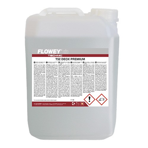 FLOWEY T52 DEOX PREMIUM on väga võimas happeline katlakivieemaldaja ja roostelahusti, mis eemaldab kiiresti lubjasette, tsemendijäägid, rooste ja oksüdatsioonikihi. Sobib tööstuspindadele, põrandatele, plaatidele, masinatele, harjadele, alumiiniumile ning muudele happekindlatele pindadele. Toode ei sisalda ohtlikku HF-hapet ega ole toksiline, mis muudab selle kasutamisel ohutumaks. Võib kasutada lahjendamata kujul raskel mustusel või 10–50% lahusena.