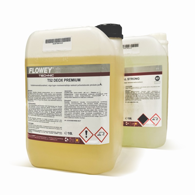 Rasketehnika kombo on mõeldud ehitus-, põllumajandus- ja transporditehnika tõhusaks pesuks, ühendades happelise eelpuhastusvahendi T52 Deox Premium 10 L ja leeliselise rasvaeemaldusaine T43 Neutral Strong 10 L. Kahe toote kombineerimine eemaldab roostejäljed, metalloksiidid, piduritolmu, õli-, rasva- ja tahmaladestused ka kõige raskemates tingimustes.