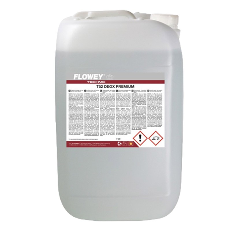 FLOWEY T52 DEOX PREMIUM on väga võimas happeline katlakivieemaldaja ja roostelahusti, mis eemaldab kiiresti lubjasette, tsemendijäägid, rooste ja oksüdatsioonikihi. Sobib tööstuspindadele, põrandatele, plaatidele, masinatele, harjadele, alumiiniumile ning muudele happekindlatele pindadele. Toode ei sisalda ohtlikku HF-hapet ega ole toksiline, mis muudab selle kasutamisel ohutumaks. Võib kasutada lahjendamata kujul raskel mustusel või 10–50% lahusena.